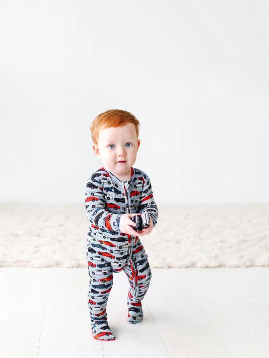From the Miles Collection. Snug-fit footie with a printed design and dual-ended zipper, perfect for nighttime changes.