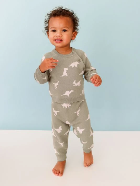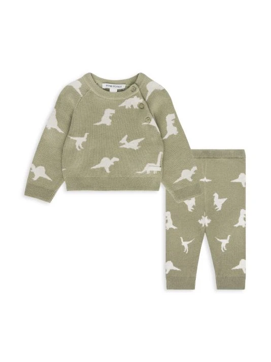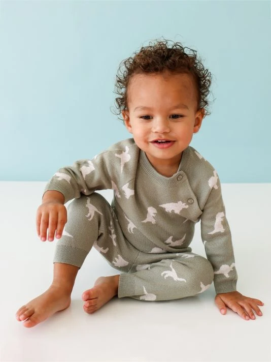 From the Poshosaurus Collection. Crafted for warmth, this two-piece set includes a three-button sweater and super-soft leggings. The cross-over wrap top has cleverly positioned shoulder buttons, so there’s nothing to pull over baby’s head and diaper changes are a breeze, thanks to the soft and stretchy elasticized legging waistband.
