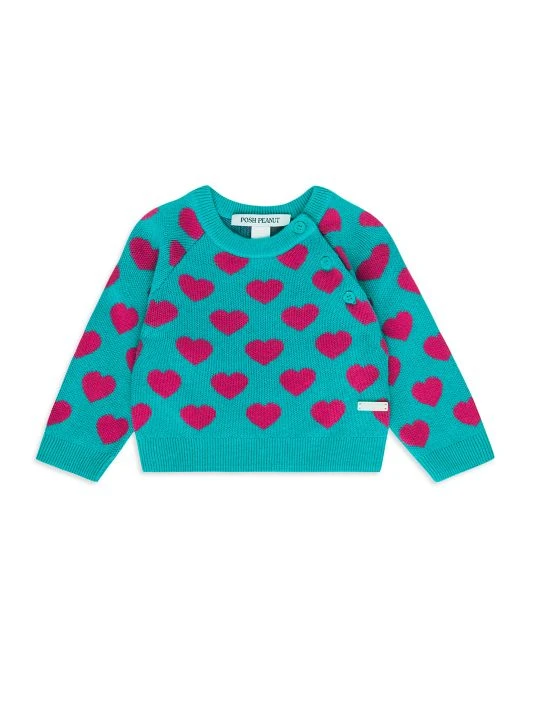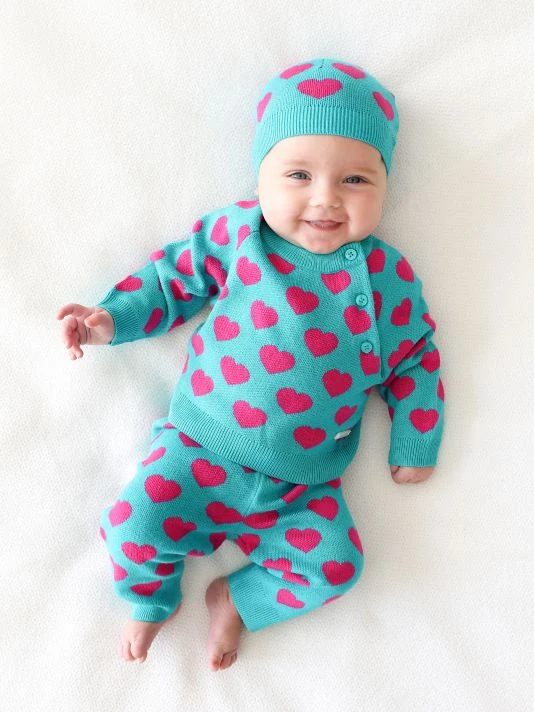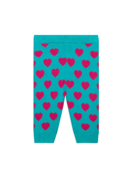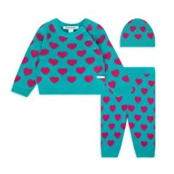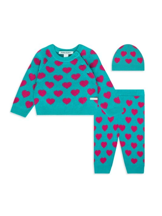 From the Queen Of Hearts Collection. Crafted for warmth, this knit three-piece set includes a beanie, a crewneck sweater with buttons at the shoulder, and leggings with an elastic waistband in a heart motif intarsia. 73% viscose from bamboo/27% cotton. Hand wash. Imported.
