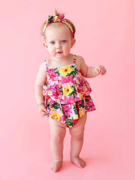For their latest, the coveted kidswear brand offers an assortment of whimsical prints from the Rio, Wave, Saint, Lennon, Very Cherry and Malana collections complemented by their beloved, plush Patooâ„¢ blankets. Crafted of Posh Peanut’s signature bamboo viscose blend, this ruffled bubble romper is the perfect lightweight summer outfit. Breathable and buttery soft, an inseam snap closure enables easy diaper changes.