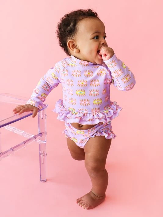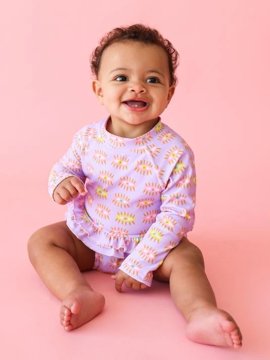 ONLY AT SAKS.This Cleo swimsuit from Posh Peanut features a long-sleeved top and bottoms with ruffles at the leg openings. This suit is 50+ sun protection, and is salt water & chlorine resistant. 80% nylon/20% spandex. Hand wash. Imported.