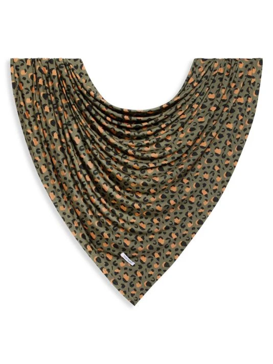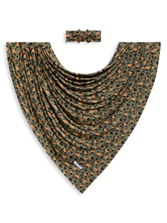 From the Eli Collection. This two-piece set in the brand’s signature breathable and lightweight Päpook® fabric features a baby swaddle and a headwrap in an animal print.