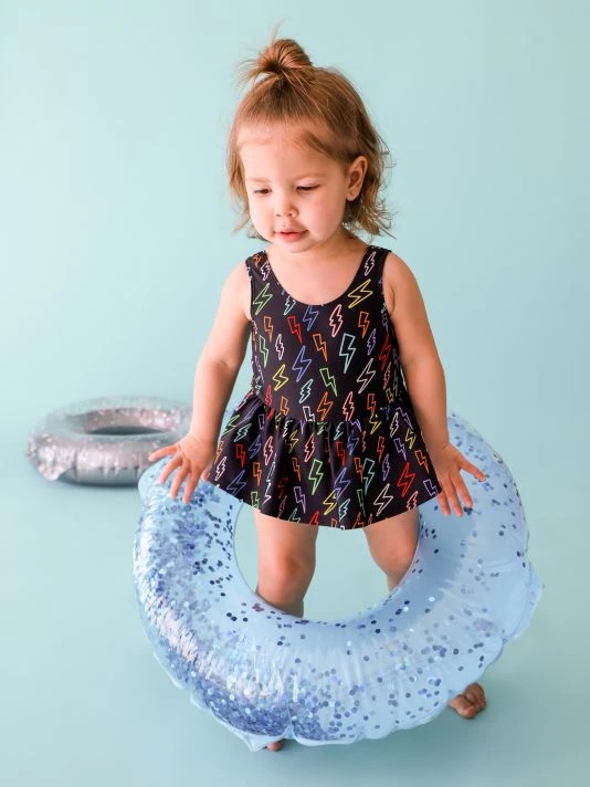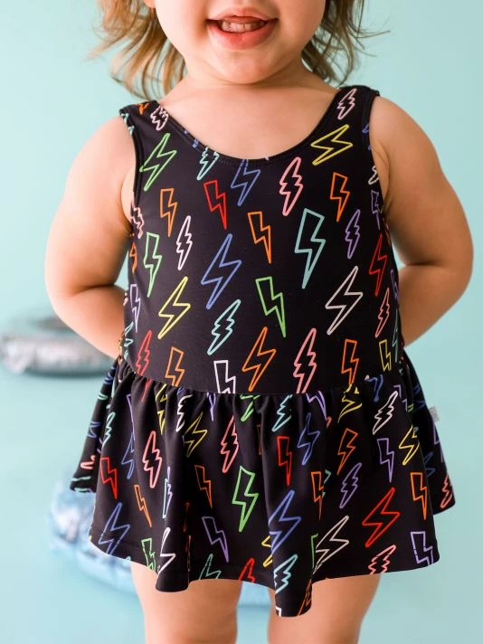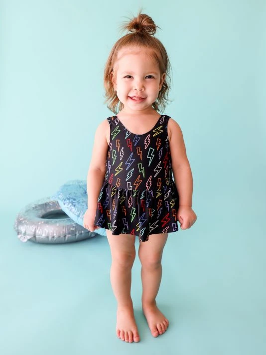 ONLY AT SAKS.From The Zack Collection. This playful one-piece features a stylish twirl skirt and a vibrant lightning bolt design.