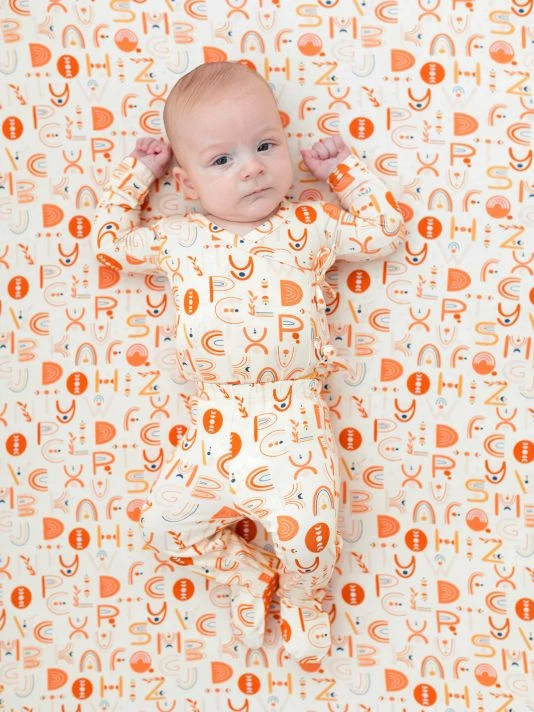 From the Alphabet Medley Collection. Posh Peanut’s Alphabet Medley footed jogger and kimono shirt set features soft and absorbent construction with Päpook® viscose, designed to regulate heat. Bamboo/spandex. Machine wash. Imported.
