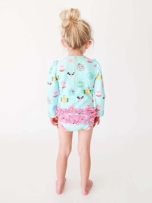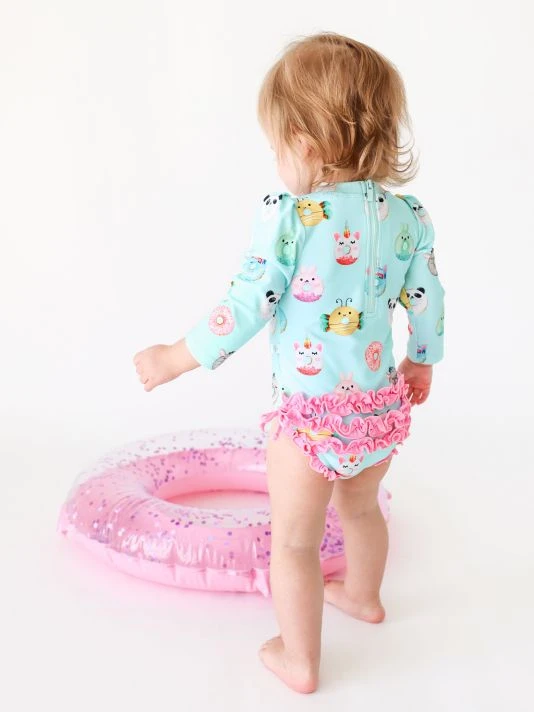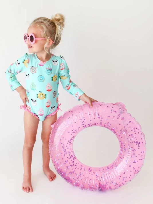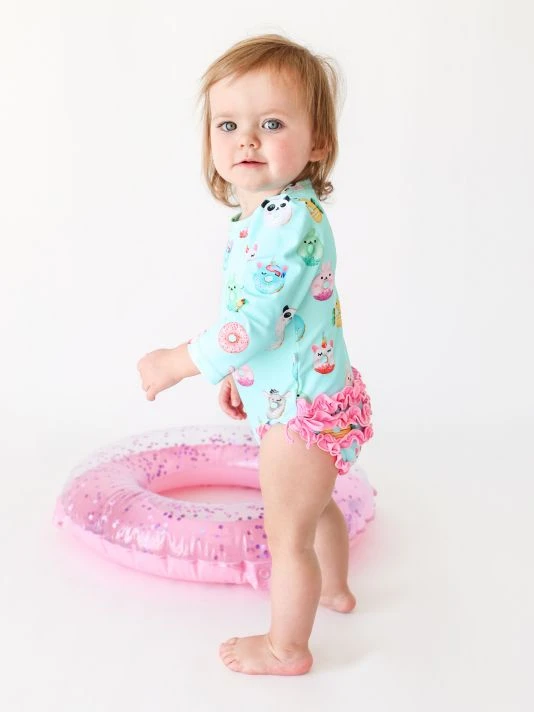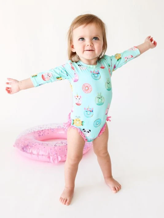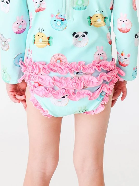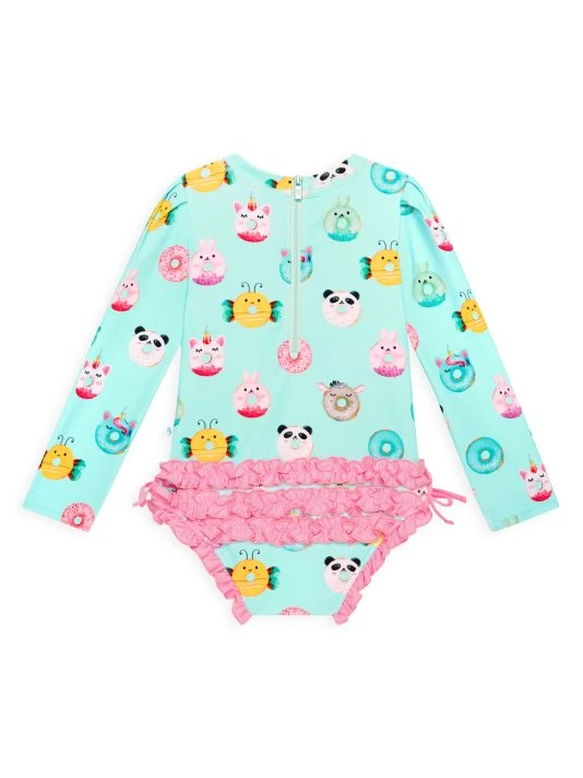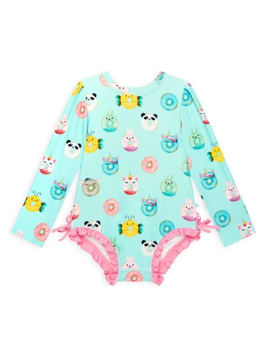 From The Donuts Collection. A romantic floral print and frill details at the leg openings enhance this one-piece swimsuit.