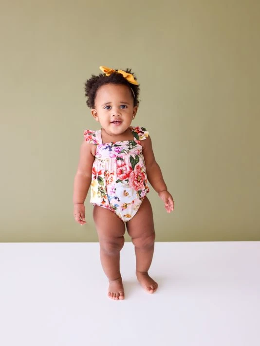 ONLY AT SAKS. From the Marisol collection. This bubble romper features ruffle cap sleeves.