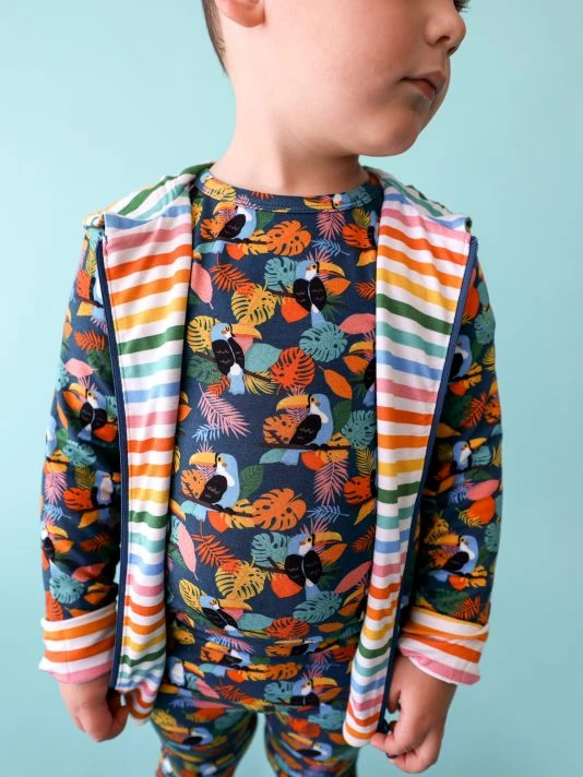 For their latest, the coveted kidswear brand offers an assortment of whimsical prints from the Rio, Wave, Saint, Lennon, Very Cherry and Malana collections complemented by their beloved, plush Patooâ„¢ blankets. Crafted of Posh Peanut’s bamboo viscose blend, thisbuttery soft, reversible jacket features a double zipper and two signature prints.