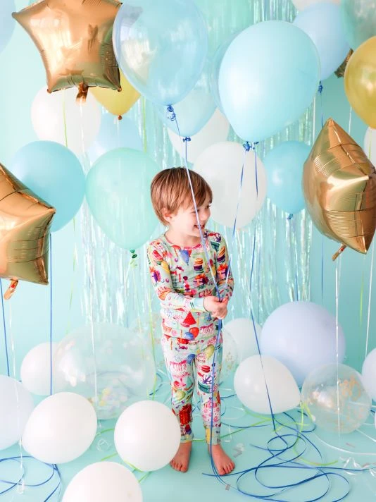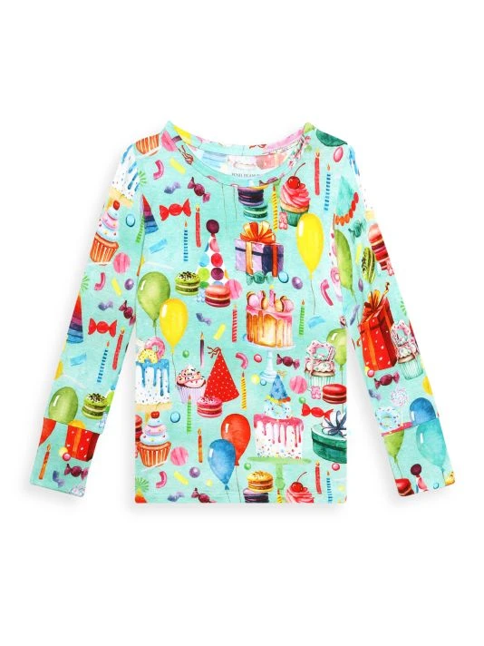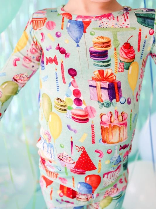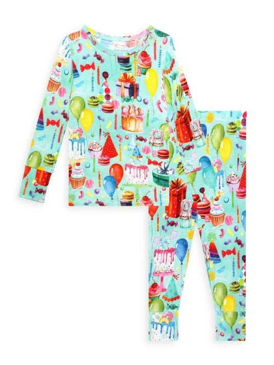 For their latest, the coveted kidswear brand offers an assortment of whimsical prints from the Rio, Wave, Saint, Lennon, Very Cherry, and Malana collections complemented by their beloved, plush Patoo™ blankets. Breathable, stretchy, and buttery soft this long sleeve pajama set is a must-have for all children. Crafted of moisture-wicking bamboo showcasing a Happy Birthday print, this lightweight set is an excellent choice for children who may overheat at night. 95% bamboo viscose/5% spandex. Machine wash. Imported.