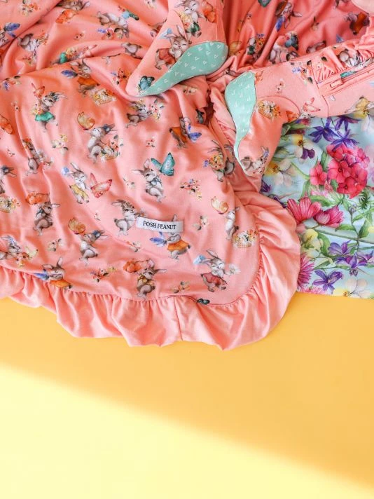 ONLY AT SAKS. The signature, one-of-a-kind baby luxe patooâ„¢ blankets are reversible and feature bunny-inspired print and ruffle details.