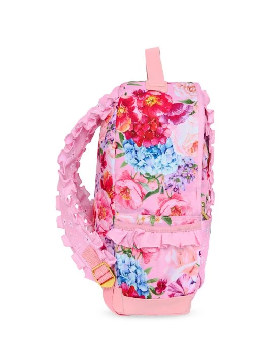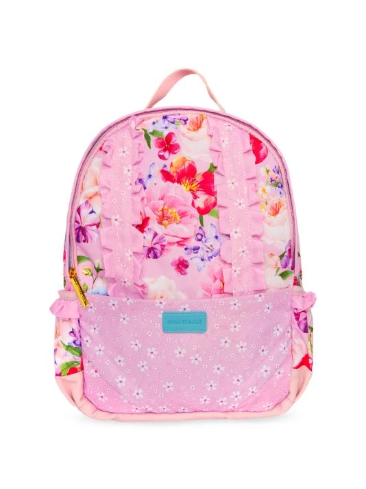 Functional, yet fashionable, Posh Peanut’s ruffled backpack features a roomy interior with a hidden pocket and hidden zipper closure for all the essentials. A front zipper pocket and side bottle pockets allow for optimal convenience and storage.