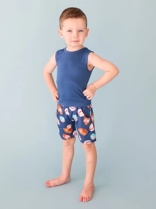 From the Homer Collection. This two-piece set features a crewneck tank top and relaxed shorts in a baseball-inspired print. 95% viscose/5% spandex. Machine wash. Imported.
