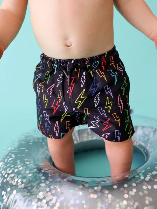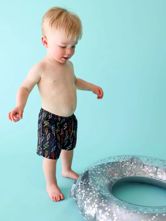 ONLY AT SAKS.From The Zack Collection. Crafted with UPF+ fabrication, these casual swim trunks showcase a colorful lightning bolt design.