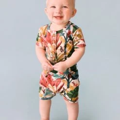 Posh Peanut Baby Boy’s Tropicana Henley Short Sleeve Romper For Kids