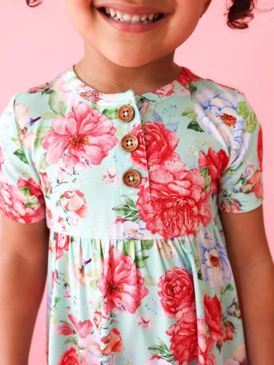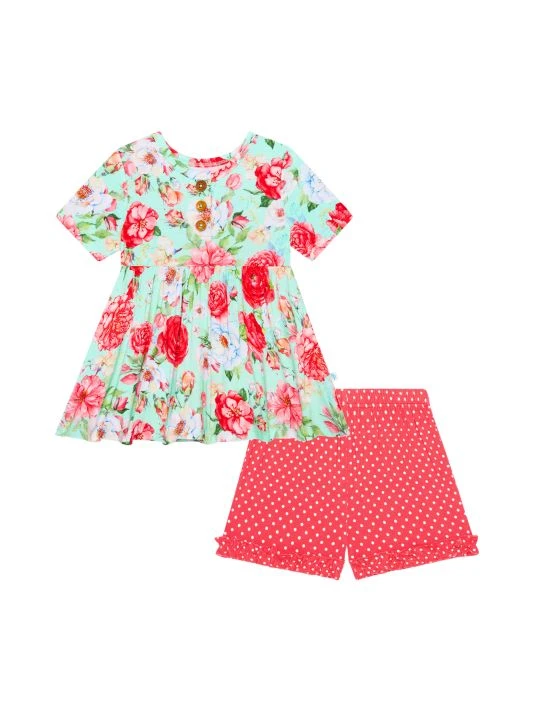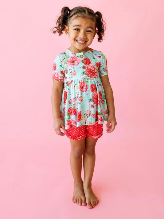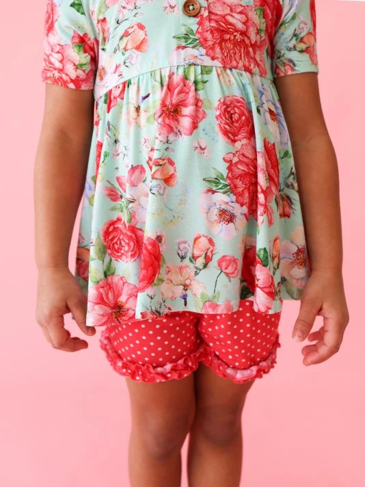 ONLY AT SAKS. From the Pippa Collection. Posh Peanut offers a whimsical array of styles crafted of a luxe bamboo blend. This two-piece set includes a short-sleeve peplum Henley top in a vibrant floral print and ruffled polka dot shorts. 95% viscose/5% spandex. Machine wash. Imported.