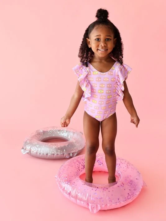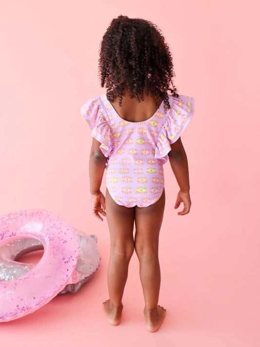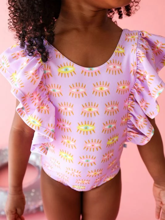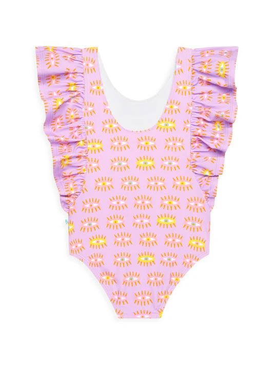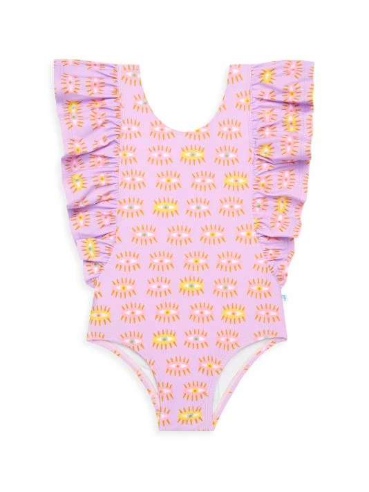 ONLY AT SAKS.Crafted of a nylon blend, this one-piece, sun-blocking swimsuit from Posh Peanut features ruffled sleeves and an eye print.