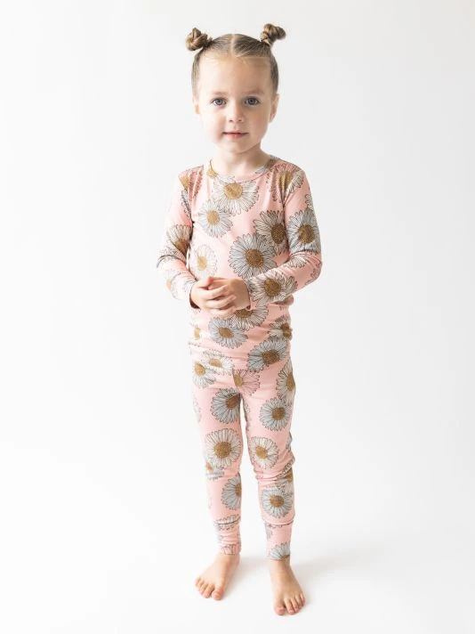 Crafted of a soft viscose blend, this pajama set features an all-over daisies Millie print. 95% viscose/5% spandex. Machine wash. Imported.