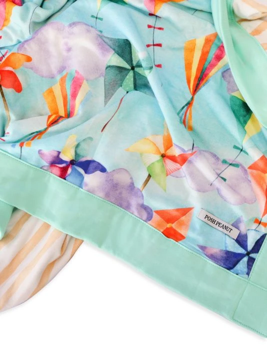 ONLY AT SAKS. From The Ryder Collection. This reversible lush blanket showcases whimsical kite illustrations and a vibrant striped design.