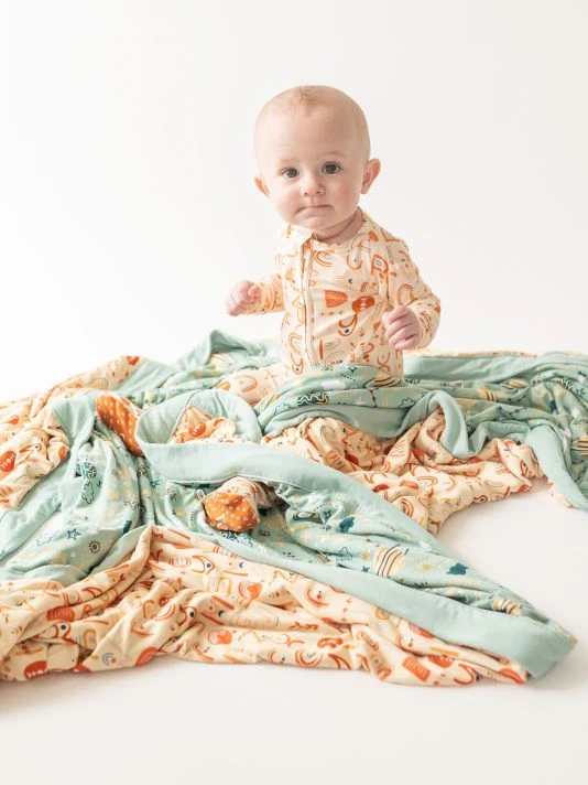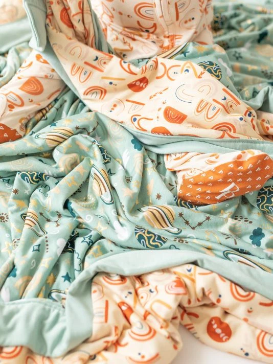 ONLY AT SAKS. Crafted of ultra-soft viscose, this reversible blanket features a space-inspired To The Stars print on one side and an Alphabet Medley design on the other.
